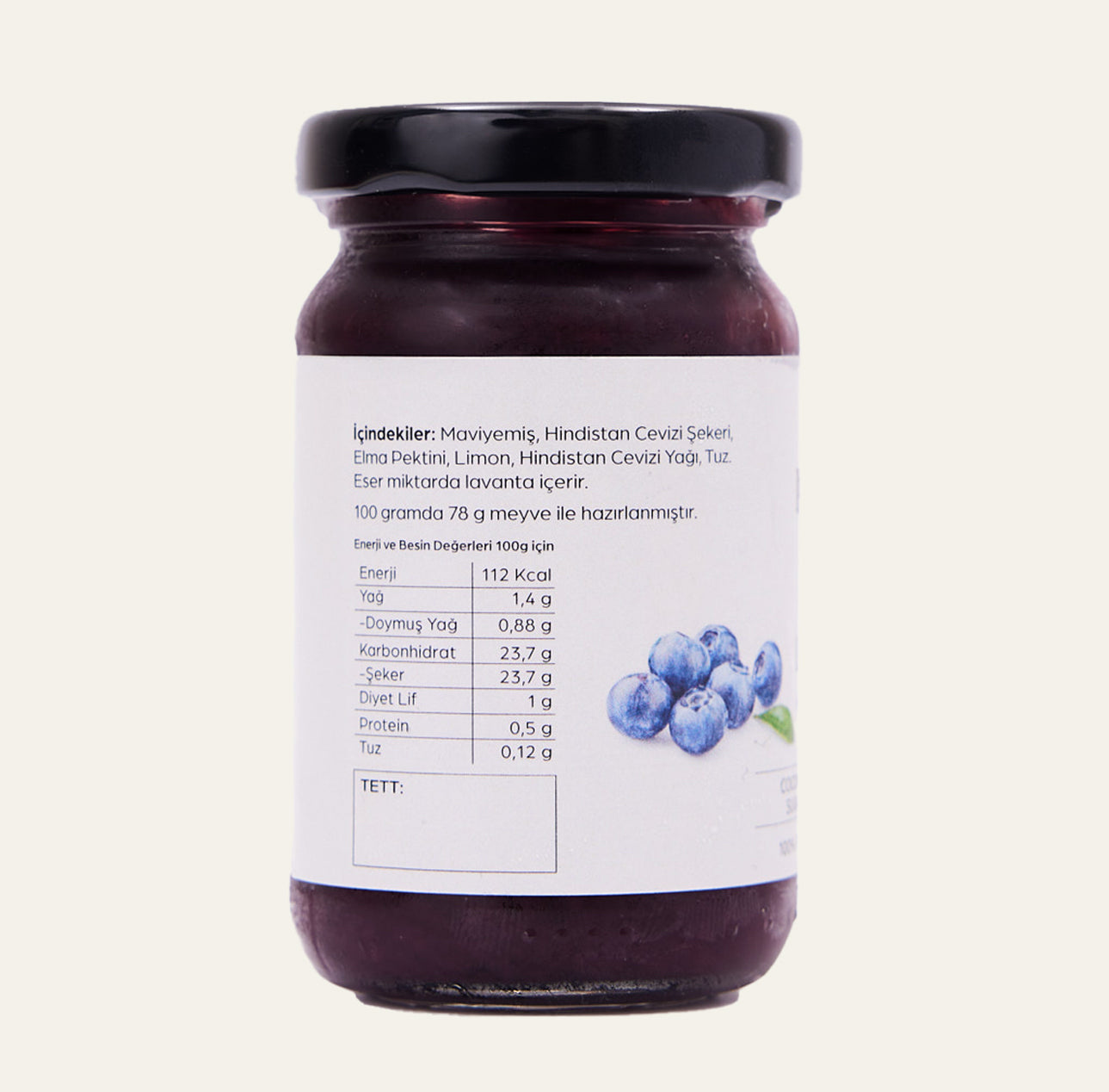 İçindekiler: Maviyemiş, Lavanta, Hindistan Cevizi Şekeri, Elma Pektini, Limon, Hindistan Cevizi Yağı, Tuz